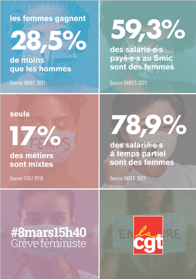 Mais ce n’est pas une fatalité ! Les revendications pour l’égalité entre les femmes et les hommes doivent être connues et portées par l’ensemble des salarié.es.
