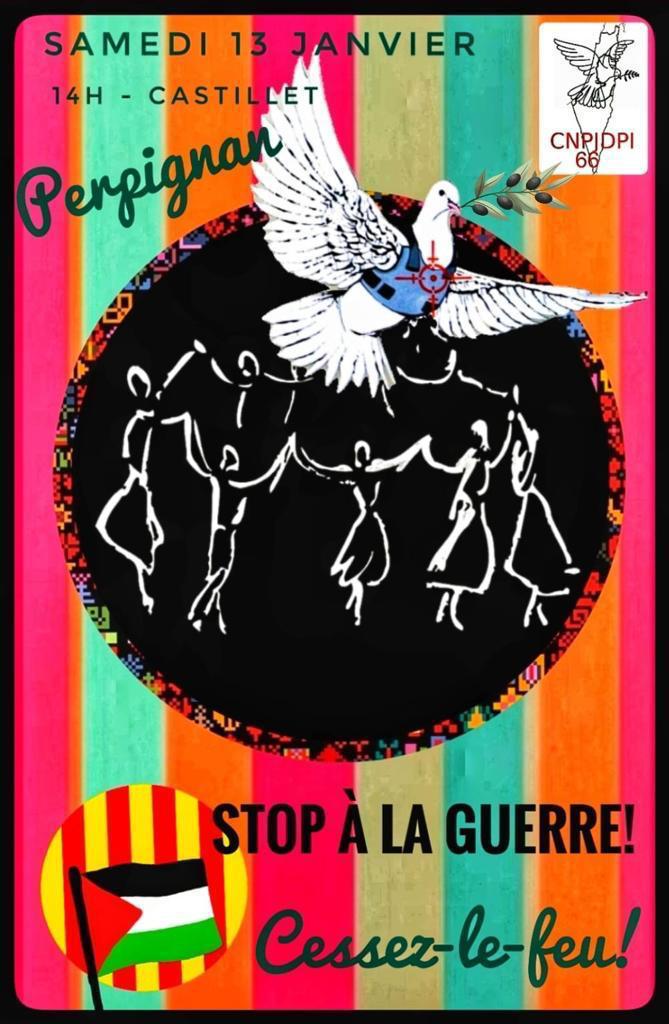 – Samedi 13 janvier à 14h place de la victoire (Castillet) : Rassemblement pour un cessez le feu immédiat à Gaza.